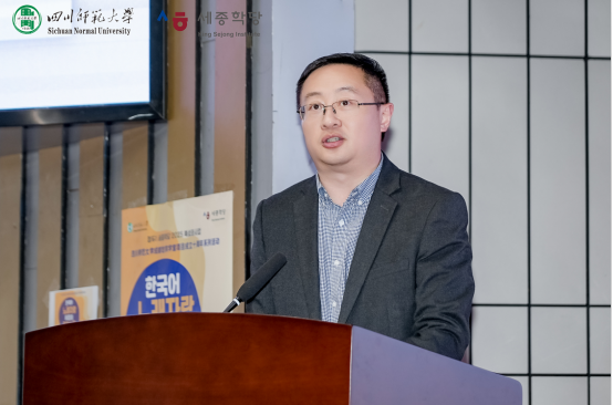 庆典仪式上,张海东代表学校致辞,向长期支持项目发展的中外合作单位、师生代表致以诚挚感谢。他指出,教育对外开放是四川师范大学的核心发展战略,学校已与全球 30 多个国家和地区的 140 余所高校及研究机构建立深度合作关系,构建了多元文化交流的广阔平台。作为学校国际教育合作的标杆项目,成都世宗学堂自 2015 年启动以来,十年间深耕韩语教育,构建了综合韩语、实用韩语、公益课程、中学出讲四大课程体系,累计培养学员 4700 余人次,举办演讲比赛、韩语角等特色活动累计参与人次超万,已成为西南地区韩语教育的重要品牌,为中韩文化互鉴搭建了坚实桥梁。